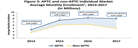 This is while subsidized enrollment (those receiving Advanced Premium Tax Credits, or APTC) was 23 percent larger than unsubsidized (non-APTC) in 2014 and 32 percent larger in 2016 — reached 61 percent in 2017.