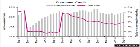 But consumers are spending less overall, as consumer credit slowed more than expected to just $10.9 billion in September, below Econoday’s consensus range and less than half of the upwardly revised $22.9 billion August increase. Growth slowed in nonrevolving credit, which rose $11.2 billion in September versus $18.3 billion previously, while growth in revolving credit stalled completely and posted a marginal decline of $0.3 billion. Gains in nonrevolving credit reflect vehicle financing and student loans while gains in revolving credit reflect credit-card debt.