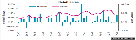 The Commerce Department said last Thursday retail sales increased 0.8 percent as households also bought more electronics and appliances. September sales were revised down, sales slipping 0.1 percent instead of nudging up 0.1 percent as previously reported; the month Hurricane Florence made landfall.