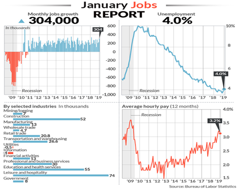Total nonfarm payroll employment increased by 304,000 in January, and the unemployment rate edged up to 4.0 percent, the Bureau of Labor Statistics reported today. Job gains occurred in several industries, including leisure and hospitality, construction, health care, and transportation and warehousing.
