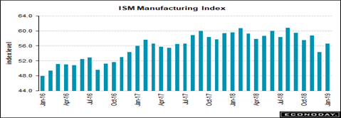 Why is manufacturing doing so well in the face of rising tariffs—in January when mid-winter business activity tends to slow? Consumers flush with cash from rising wages and full employment are powering higher domestic demand. Exports, on the other hand, have declined because of the rising costs of materials and parts, causing buyers to switch to exports from other countries that aren’t affected by the trade wars. Manufacturing exports had the slowest growth in two years.