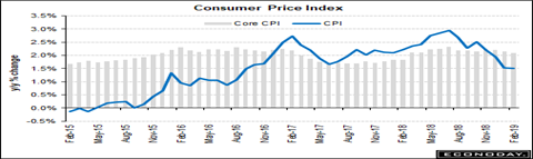 There is almost no inflation, and the markets love it, as both stocks and bonds are rallying on news. The Consumer Price Index rose just 1.5 percent in February, and its core without more volatile food and energy prices was up just 2.1 percent. The Fed has even stopped raising their short term rates, in an attempt to boost inflation higher, but no dice. It won’t move at all, but is falling.