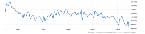 What is most shocking is the continuing growth of the US monthly trade deficit (in above graph), though only partly due to the trade wars, since American consumers flush with case have widened the deficit by continuing to buy more imports than we export. But it could get worse if Trump continues to raise tariffs on China, in particular. Labor think tank Economic Policy Institute (EPI) reports the U.S. goods trade deficit with China reached a new record of $419.2 billion in 2018, up from $375.6 billion in 2017, an increase of $43.6 billion (11.6 percent). United States trade with China is dominated by the deficit in manufactured products.