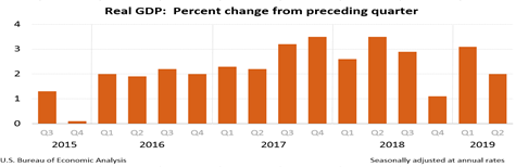 This means they could stop spending if any more shocks occur, such as the possibility that China might wait until after the 2020 election to make a deal on tariffs. Exports and residential investments also declined from Q1.