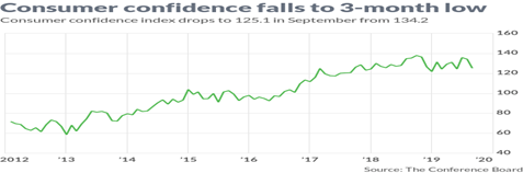 The ‘other’ shoe to drop was the Conference Board’s consumer confidence index that fell to a three-month low of 125.1 this month from 134.2 in August.