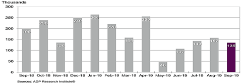 And yesterday’s Associated Data Processing survey came in at 135,000 jobs created, which is a slight downward trend. Just 8,000 jobs were added to the goods-producing sector, whereas 127,000 jobs were added to the service-providing sector, according to ADP.
