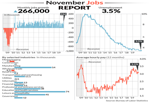 Total nonfarm payroll employment rose by 266,000 in November, and the unemployment rate was little changed at 3.5 percent, the U.S. Bureau of Labor Statistics reported today. Notable job gains occurred in health care and in professional and technical services. Employment rose in manufacturing, reflecting the return of workers from a strike.