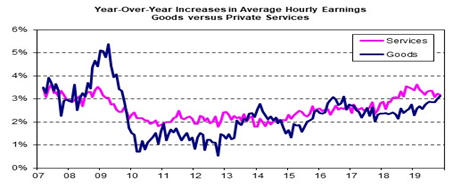 The only caveat was the slight drop in average hourly pay to 3.1 percent, down from 3.4 percent earlier in 2019. Why? It’s all the lower-paying jobs that benefit from consumer spending; like Transportation and warehousing (15.5k new jobs), and the aforementioned Leisure and Hospitality jobs.