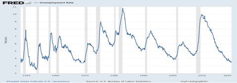 Is the U.S. economy already in recession? How can it be with more than 80 percent of the adult workforce employed? But that isn’t how recessions actually begin, as portrayed in the above St. Louis Fed unemployment rate history dating from 1950.