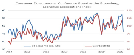 “Consumer confidence declined sharply in March due to a deterioration in the short-term outlook,” said Lynn Franco, Senior Director of Economic Indicators at The Conference Board. “The Present Situation Index remained relatively strong, reflective of an economy that was on solid footing, and prior to the recent surge in unemployment claims. However, the intensification of COVID-19 and extreme volatility in the financial markets have increased uncertainty about the outlook for the economy and jobs. March’s decline in confidence is more in line with a severe contraction – rather than a temporary shock – and further declines are sure to follow.”