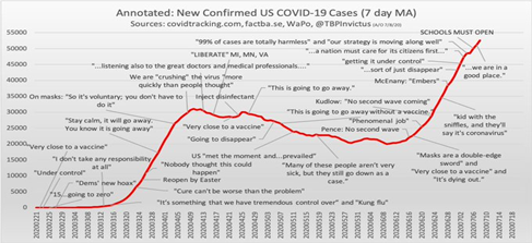 Yet one political party has chosen to surrender to the pandemic, rather than follow the scientific guidelines of the CDC, WIH, and FDA in many of the red states it controls.