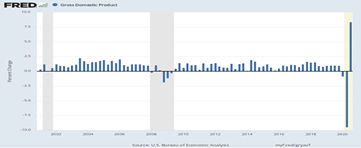 That is a lot of growth to make up in the midst of this pandemic, and we have had double-dip recessions before; the last in 2008 per the above GDP graph. It happened then because President Obama decided in 2010 that it was more important to begin to pay down the national debt, rather than spend more in basic services to bring the US economy out of the Great Recession, the worst one since the Great Depression.