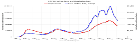Are we through the worst of this pandemic? The COVID Tracking Project (CTP) reports both COVID positive tests and hospitalizations are down sharply in January.