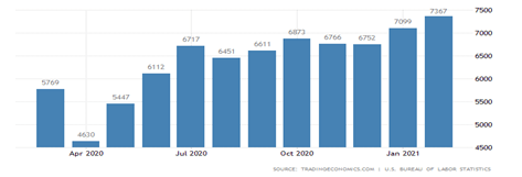 “Job openings now top prepandemic levels and aren’t far from the record high of 7.57 million in November 2018,” said MarketWatch’s Jeffry Bartash.. “Many companies are looking to hire more workers in anticipation of the economy strengthening as most of the American populace gets vaccinated.”