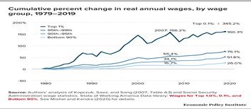 There is no secret where the increased wealth generated by modern technology has gone in the US; to the owners of capital—stock holders, CEOs, and financial entities that hold their debt—rather than wage-earning employees.