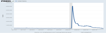 Another indicator of future job prospects is the decline in weekly initial jobless claims for unemployment as unemployment benefits expire.