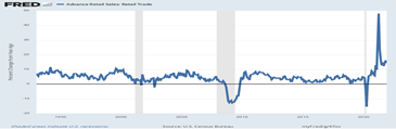 Yet they were up 14.4 percent YoY in December, seasonally adjusted, as shown in the FRED graph. Retail sales are still booming, so what should we worry about in 2022?
