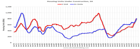 “Combined, there are 1.622 million units under construction. It is the most since February 1973, when a record 1.628 million units were under construction (mostly apartments in 1973 for the baby boom generation).”