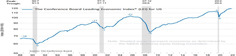 The Conference Board Leading Economic Index® (LEI) for the U.S. decreased by 0.3 percent in April to 119.2 (2016 = 100), following a 0.1 percent increase in March. (But) The LEI is now up 0.9 percent over the six-month period from October 2021 to April 2022.