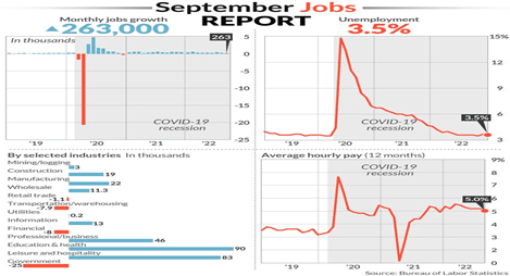 The U.S. Economy is still fully employed for those wanting to work; with a historically low 3.5 percent unemployment rate, 263,000 nonfarm payroll jobs, and hourly wages rising at 5 percent in September’s unemployment report.