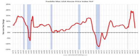 Per Calculated Risk, Freddie Mac recently reported that its “National” Home Price Index (FMHPI) declined for the seventh consecutive month on a seasonally adjusted basis in December, putting the National FNHPI down 2.5% from its May 2022 peak, and down 5.0% Not Seasonally Adjusted (NSA) from the peak.