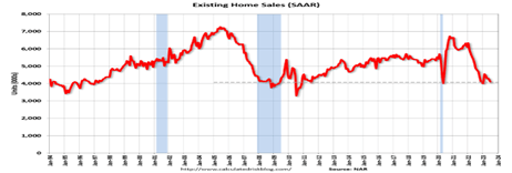 When will the housing sales decline reverse course? Not very soon, according to Calculated Risk’s Bill McBride. “It now seems likely that in a few months existing home sales will fall below the previous cycle low of 4.00 million in January 2023,”