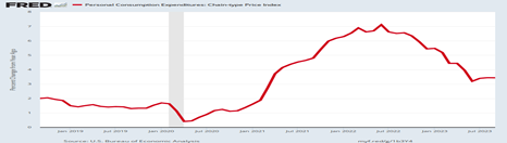 The more general Personal Consumption Expenditure (PCE) inflation indicator, another favored Fed price index is running at 3.4 percent annually per above FRED graph .