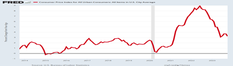 And that is happening. The Consumer Price Index for All Urban Consumers (CPI-U) was unchanged in October on a seasonally adjusted basis, after increasing 0.4 percent in September, the U.S. Bureau of Labor Statistics reported today. It dropped to 3.2 percent from 3.7 percent in August. It was as high as 8.9 percent in June 2022.