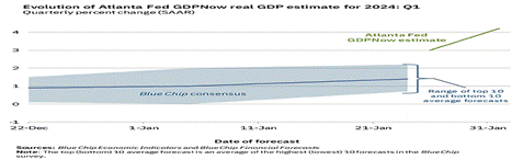 But the markets like to respond to facts rather than hearsay and we now have a huge revision to the GDPNow growth estimate from the Atlanta Fed that I’ve been following. In fact, GDP growth may be accelerating in 2024.