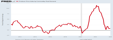 PPI Final Demand is now up just 0.9 percent in 12 months, far below the Fed’s 2 percent target. It jumped 0.6 percent in January but monthly prices declined 0.1 percent in December 2023 and advanced just 0.1 percent in November.