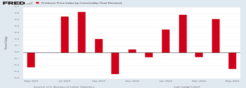 It will probably be hard to believe for those scarred by the post-pandemic inflation scare that inflation isn’t declining, but there was no inflation increase in May for both wholesale (PPI) and retail (CPI) inflation indexes.