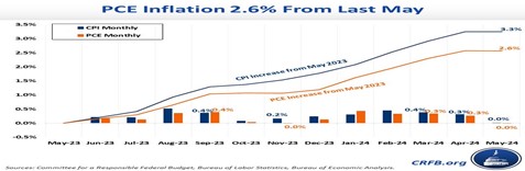 That is reflected in the major inflation indexes which were all flat in May. The Fed’s preferred Personal Consumption Expenditures (PCE) monthly inflation index didn’t rise at all on Friday in line with retail CPI prices (in blue line) reported earlier this month as seen in above graph.