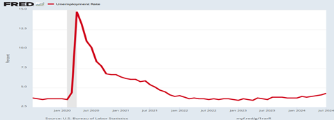 It’s understandable, as the unemployment rate has been steadily rising from its low in January 2023 of 3.4 percent to 4.3 percent in July 2024–the beginning of a definite trend. Average hourly wage increases have declined to 3.6 percent, falling in line with the declining inflation figures that we reported last week.