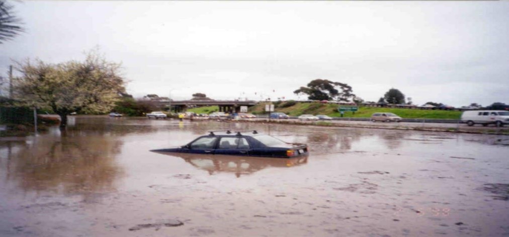 A second flood in 1995 caused another flooding of Old Town’s main street. A three-foot deep stream of water from a torrential rainfall overflowed San Jose creek at one end of Old Town’s boundaries. A climate scientist later said that the creek would no longer be adequate for containing flooding because the hard paved streets and roof surfaces in the surrounding neighborhoods had replaced the soil that had absorbed excess rainfall. Now the creek carried almost all of the rain’s runoff.