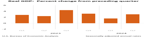 Any signs of a recession are declining. The U.S. economy is picking up speed in the BEA’s third and final revision of second quarter GDP growth. The U.S. economy has held the 3.0 percent growth rate, mostly due to strong consumer spending, our main growth engine, which was revised down to 2.8% from 2.9%.
