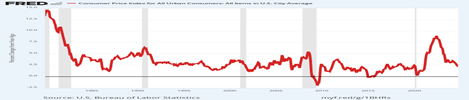 The retail Consumer Price Index (CPI) in the FRED graph above dating from 1980 is the eaiest way to understand why we had high inflation spikes and how long it took for it to return to normal.