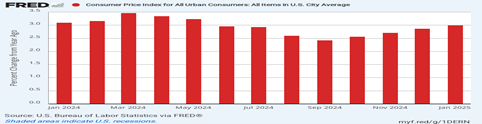 It is unfortunate that President Trump’s wave of tariff announcements have occurred at the same time as inflation is beginning to rise again. This is incredibly bad timing when he said that he would bring down inflation on ‘Day 1’ of his presidency.