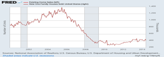 It’s about time. We are seeing a housing revival with existing home sales on a 7-month high for the first time since the 2008-09 Great Recession (wide gray band in FRED graph), as reported by the National Association of Realtors (NAR).