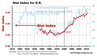 Americans now have the worst income inequality in the developed world as measured by various sources, especially the CIA’s World Factbook. In fact, our income inequality is at the level of developing countries like Mozambique.