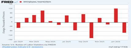 The U.S. economy lost a total of -92,000 payroll jobs in February and the unemployment rate edged up to 4.4 percent occurred just when President Trump began his Middle East war.