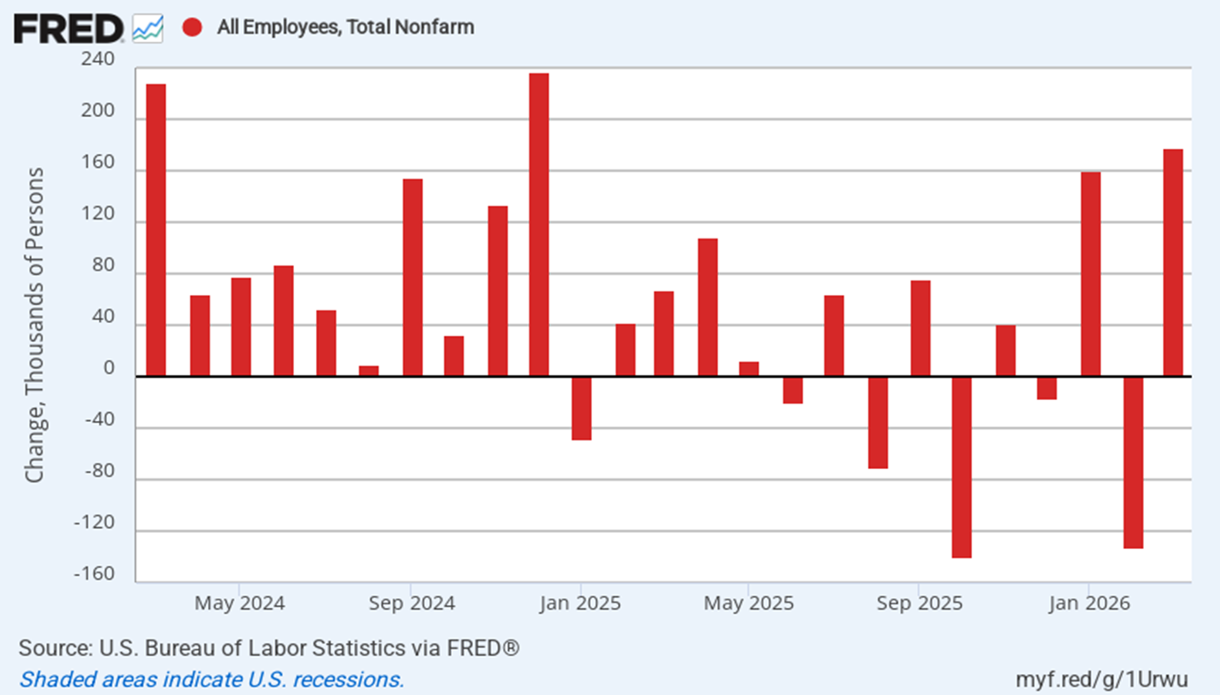 This was a very good March unemployment report, per the U.S. Bureau of Labor Statistics, a complete reversal of February’s -133,000 payroll (revised) job losses. It was mainly because 31,000 Kaiser healthcare nurses settled their strike, and improved weather brought construction workers out that were building the record number of AI data centers that must generate so much electricity for Artificial Intelligence that could put as much as 30 percent of white-collar workers out of jobs.