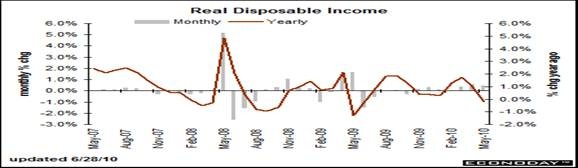 Monthly supply has seen sharp movement in recent months as that ratio is moved more by sales than by the number of homes on the market. Supply on the market eased somewhat to 7.6 months after surging to 9.6 in May. April had been pushed down to 6.1 months’ supply as sales bumped up to meet the signing deadline for tax credits. The median home price slipped 1.4 percent to $213,400. Year-on-year, the median price in June is down 0.6 percent. The bottom line is that the elevated inventory levels of new homes is helping keep prices low.