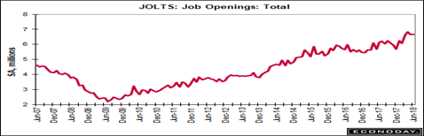 The fall in part-time employment tells us why wages are finally rising above the inflation rate—most have found full-time work. This may cause the inflation rate to rise, since workers’ salaries are about two-thirds of product costs. Inflation is still tame, however, with the Fed’s preferred ‘core’ PCE inflation index holding at 2 percent. We believe the Fed will raise short term interest rates by another 1/8 percent at its next FOMC meeting, anyway, in spite of President Trump’s tendency to berate Fed Governors to hold interest rates down; because higher interest rates make imported goods more expensive for consumers.